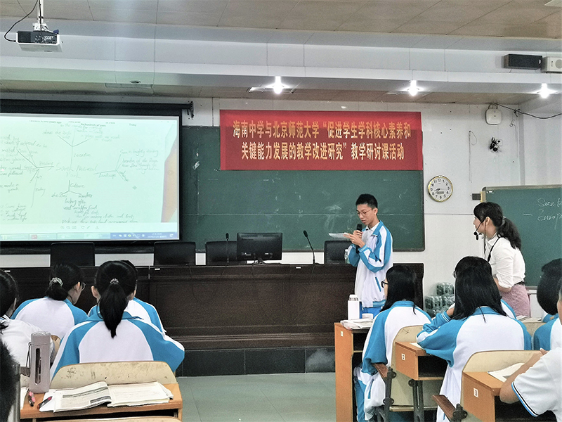 2020年秋季学期,北京师范大学外语教育与教师教育研究所与海南中学就“促进学生核心素养和关键能力发展的教学改进研究”项目开展合作。11月5日,我所王蔷教授、钱小芳副教授赴海南中学观摩试讲课、评课,并带来专题讲座。在本次教学改进活动中,海南中学2020年春季、秋季学期参加该项目的四位教师依次进行正式讲和试讲。来自海南中学英语组的老师、三亚分校英语组的老师以及海口市其他高中的英语教师参与了此次活动。