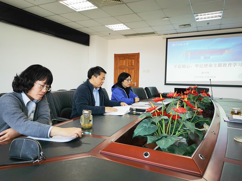 10月28日下午,外围买球app十大平台官网领导班子成员在后主楼1020会议室开展了“不忘初心,牢记使命”第五次集体理论学习会。本次学习围绕“政治纪律和政治规矩”展开,由院长苗兴伟主讲。