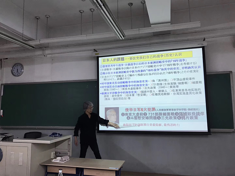 11月6日晚,外围买球app十大平台官网日文系姜弘在面向全校学生的通识课日本社会与文化课上邀请日本学者森正孝先生做了题为“731细菌战真相及日本政府的责任”的讲座。森先生曾在静冈大学任职讲授和平学,致力于研究731部队及细菌战等问题30余年。自1994年起赴中国数十次,多次到黑龙江省、浙江省等地调查细菌战受害者。同时他在日本也寻访到大批731部队原成员,力图还原历史真相。森先生把在侵华战争中犯下反人类罪行的日本731细菌部队恶魔般的丑陋真相经过调查研究整理出来,给我们留下了珍贵的第一手资料。森先生曾为在细菌战中受害的中国人向日本政府提起诉讼讨公道,堪称日本的良心。此次讲座受到了学生们的高度评价,学生们纷纷表达了对森先生的敬意,并在和森先生的交流中表达了当代中国大学生对中日关系和历史问题的看法。