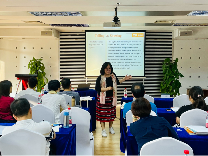 讲座最后,王蔷教授和容山中学英语组长徐宏斌老师对本次讲座进行总结。王蔷教授表达了对各位老师的希冀。希望各位老师能够通过本次培训有所收获,能够对自己的教学工作有新的认识和体会,并给老师们布置了相应的学习任务,让老师们在实践中学习与成长。徐老师表示,三天紧张而充实的学习让各位老师收获颇多,各位老师也十分期待下个月即将举办的第二次主题讲座培训。
