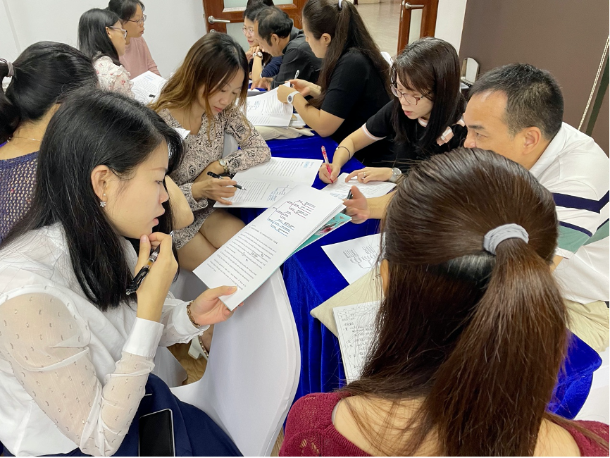 下午,王蔷教授就第一天“大观念背景下的英语教学实践”主题讲座带各位老师们进行教学设计实践。王老师首先带领各位老师观看了优秀单元整体教学设计的视频,让老师们分小组进行教学设计、绘制教学结构图并进行展示,最后对每个小组的展示进行点评,并给出建设性建议。