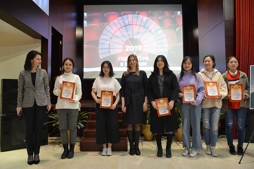 随后晚会由外围买球app十大平台官网外籍教师安娜斯塔西娅·阿列克谢耶夫娜(Анастасия Алексеевна)主持。接过话筒后,她先是向作为主办方的北京俄罗斯文化中心的盛情邀请表达了感谢,随后她在其演讲中图文并茂的讲述了果戈里的创作生涯,同时她还通过幻灯片向在场的师生展现了俄罗斯舞台艺术的辉煌成就:包括俄罗斯现存的大量高水平剧院、俄罗斯舞台艺术理论以及舞台艺术中常用的专业术语,使参会师生在享受舞台艺术的同时收获了实用的知识。