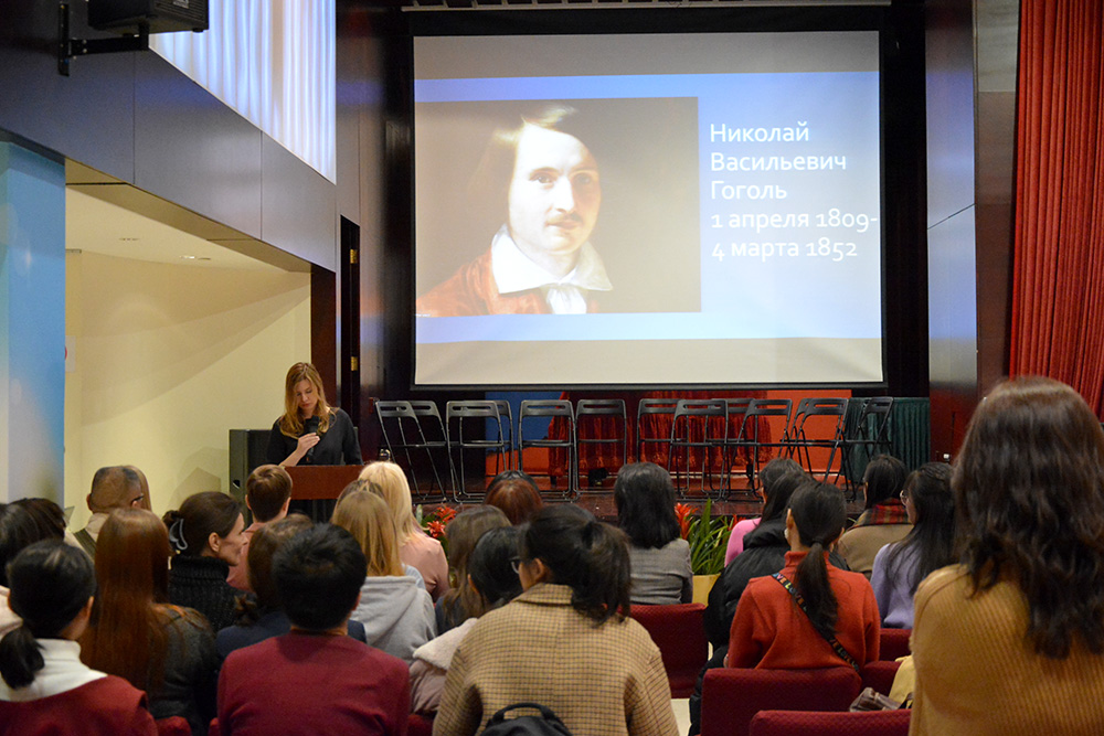 2019年3月29日晚,在北京俄罗斯文化中心成功举办纪念俄罗斯伟大作家尼古拉·瓦西里耶维奇·果戈里诞辰210周年的文艺晚会。此次晚会共有来自北京师范大学和北京外国语大学两所学校的教师、本科生和研究生60余人参加。