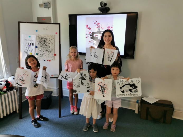 本期夏令营的学员均为6-12岁的当地学生,虽然只有短短五天,但孩子们收获颇丰。今年12岁的Noah对中国文化有着浓厚兴趣,对太极中的阴阳概念、不同流派的书法字体都有所了解,积极参与课堂活动,还乐于分享自己的速写作品,创意十足。另一位男孩Leo, 初见时腼腆害羞,但很快就融入了课堂,专注认真,活力十足,在音乐方面颇有天赋。华裔女孩Eleanor虽然不会说中文,但每一堂课都认真听讲,积极参与。此外,本次夏令营还迎来了两对姐妹花—美国姐妹Madelynne和Emerson, 华裔姐妹Hannah(海娜)和Gloria(海晴)。她们可爱喜人,为大家带来了许多欢笑。