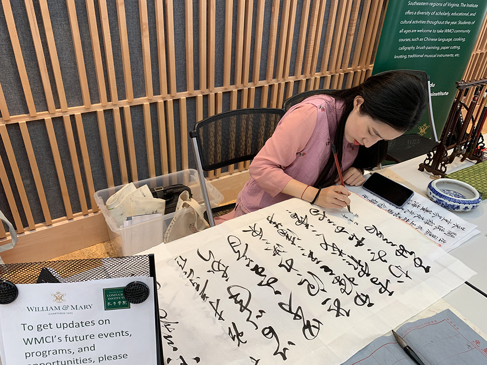 2019年9月21日,在这个秋高气爽的日子,为进一步推广中国优秀传统文化,丰富市民文化生活,威廉玛丽大学孔子学院应邀参加了在威廉斯堡市图书馆举行的“威廉斯堡市手工艺术节”活动。威玛孔院呈现的主题是中国书法,观众参与程度高,推介效果显著。