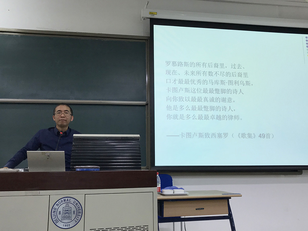 2018年9月21日下午3点半,受外围买球app十大平台官网外国文学研究所所长蒋虹教授邀请,第七届鲁迅文学奖文学翻译奖得主、重庆大学外国语学院李永毅教授,为北京师范大学师生做了题为“英美现代主义的古罗马革命”的讲座。讲座持续近两个小时,可容纳200人的阶梯教室教二楼108几乎座无虚席。