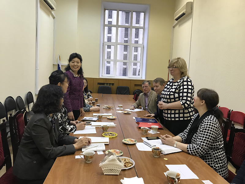 首先外围买球app十大平台官网教师一行来到莫斯科国立师范大学,就两所师范院校未来的国际合作与交流等一系列重要问题进行了深入的商谈和协商。莫斯科国立师范大学是我校友好合作院校之一。俄方高度重视与北京师范大学的合作与交流,双方合作已有了良好开端。负责外事的莫师大副校长柳德米拉·瓦西里耶夫娜、语言学院院长伊琳娜·格纳季耶夫娜及其他有关人员参加了此次会谈。与会人员就我校俄罗斯研究中心、俄文系与莫师大双方共同举办第三届“奔向莫斯科”俄语大赛、俄语专业本科生暑期游学的具体细节以及双方联合培养学生的合作意向、共同举办学术会议、远程现场学术交流、联合编写教材等等问题进行了深入的探讨与磋商,强调双方合作具有广阔的发展空间,突出科学研究协同创新理念。就今后双方院系在学生互换、科研合作、人才培养、专家讲学等领域,进一步拓展多层次,多领域的合作与交流达成一致。