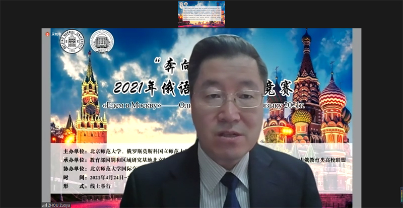 周作宇副校长在开幕辞中指出,2021年是《中俄睦邻友好合作条约》签署20周年,20年来,中俄在人文领域的合作实现了前所未有的发展,北师大和莫师大在人才培养和科研领域的积极合作对促进中俄人文交流有着重要意义。他强调,“奔向莫斯科”俄语奥林匹克竞赛的不断深入、壮大就是中俄青年交流不断走向纵深的见证。