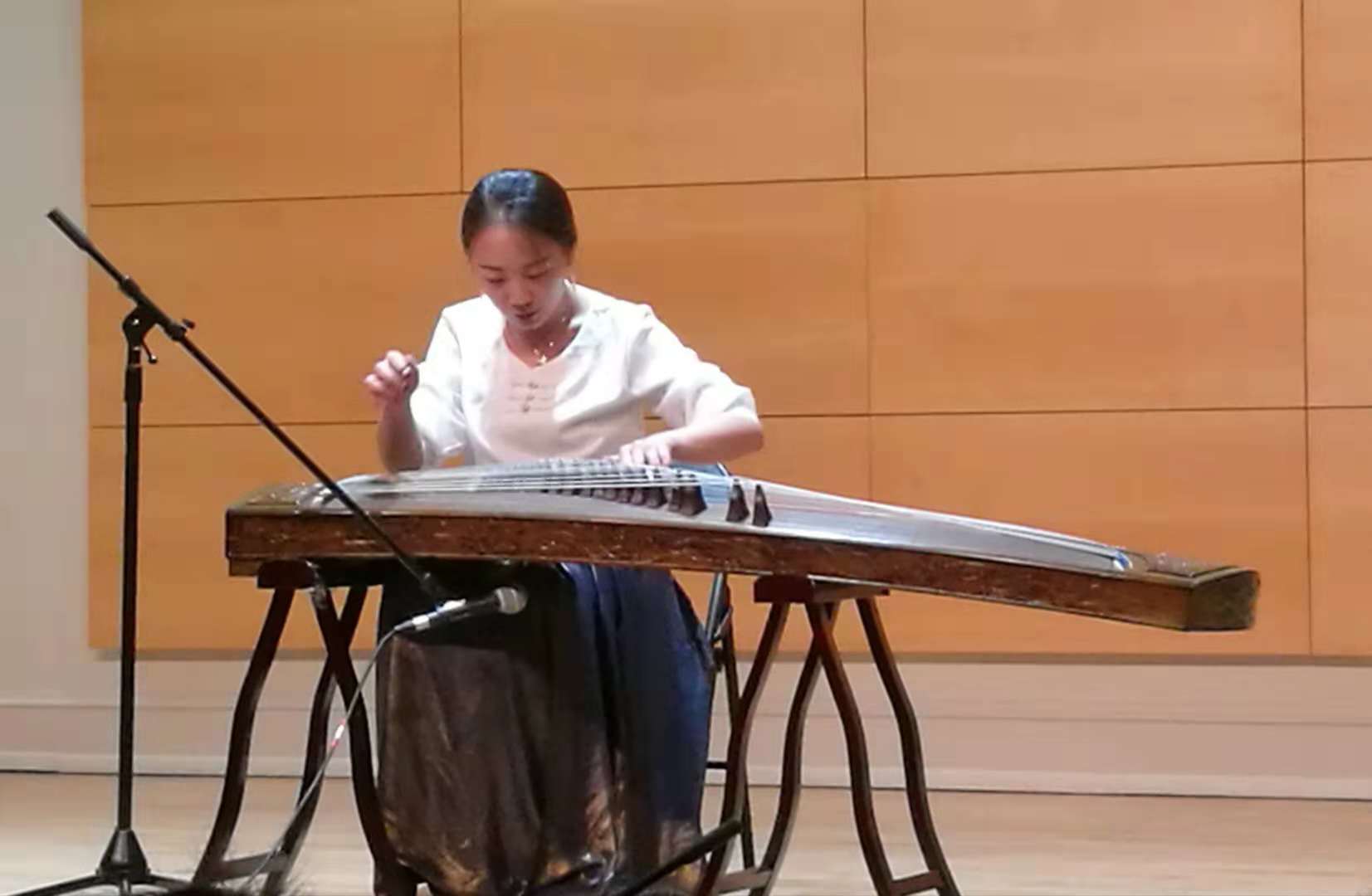 威廉玛丽大学中国留学生印锐同学作为特邀嘉宾,为观众们表演了古筝曲《战台风》,丰富多变的技法,激越磅礴的气势,让观众们领略到了古筝另一番别致的趣味,见证了中国乐器巨大的张力和表现力。