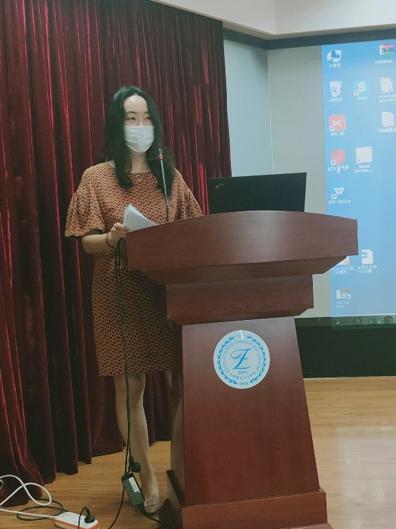 胡笑然老师代表文学组,从博学中西和文明互鉴的角度提出文学教学中融入课程思政的内容,落实文学教育育人的目标。语言与文化是密不可分的, 文学体现了一国文化的精髓。一国之文学不仅是其语言的艺术,而且还有这个国家的人们的爱憎情感和对真、善、美的追求。文学是对人生体验的文化表征。文学作品隐含着对生活的思考、价值取向和特定的意识形态。学习英美文学是了解西方文化的一条重要途径, 可以接触到支撑表层文化的深层文化, 即西方文化中带根本性的思想观点、价值评判、西方人经常使用的视角以及对这些视角的批评。在比较的视野中,以两种文字的文学文本作为知识积累的基础,依托教师的领引阅读和阐释点播,提升学生以中国人的视角增强学生的全球胜任力和参加国际论坛的交流能力。