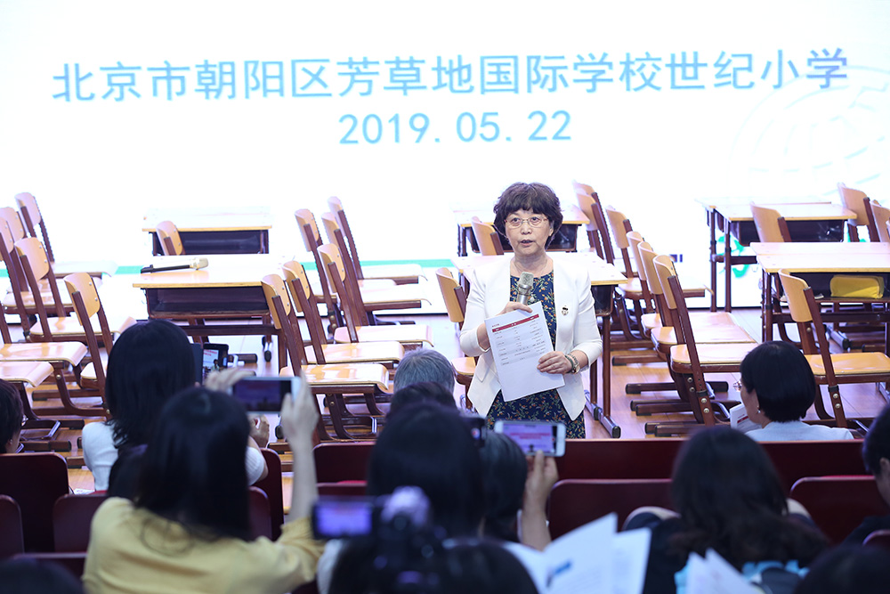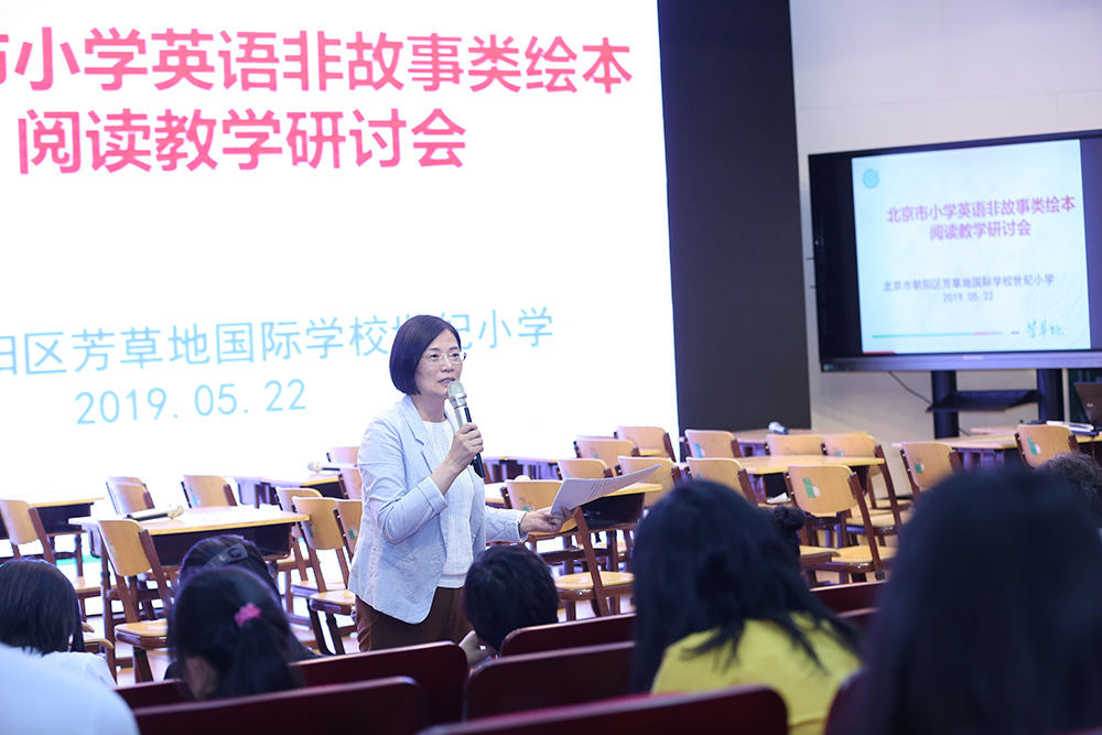 5月22日,北京市小学英语非故事类绘本阅读教学研讨会暨小学英语绘本阅读课程创新研究项目总结会于北京市朝阳区芳草地国际学校世纪小学成功召开。会议由北师大外围买球app十大平台官网、北京教科院基教研中心、朝阳区教育研究中心联合主办,中阅院和外研社协办,芳草地国际学校世纪小学承办。会场座无虚席,吸引了北京市各区县小学英语教研员及教师约300人参加。