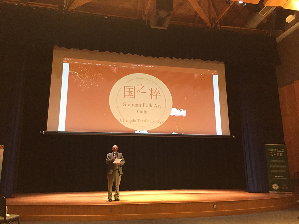 展演开始前,威廉玛丽大学孔子学院外方院长、威玛副教务长Stephen Hanson发表讲话,表达了对中国传统文化的喜爱,由衷感谢成都纺织高等专科学校各位师生及中国艺术家们带来此次展演,也对孔子学院促进中美文化交流而做出的贡献表示高度赞扬。