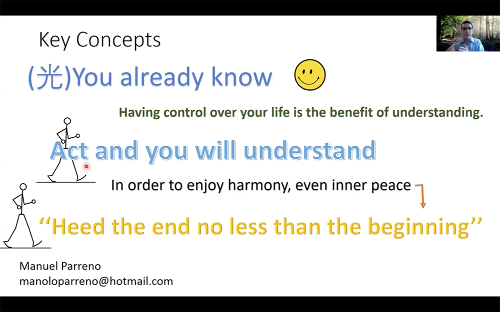 讲座开始时,威玛孔院外方院长,威玛副教务长史蒂夫•汉森(Steve Hanson)发表讲话,对主讲人进行介绍并表示感谢。之后主讲人曼努埃尔•帕雷诺进行了一小时的线上演讲。讲座开始,他通过对自由意识的探讨引出了主题“道”,继而讨论了道的定义及含义。他对一系列关键概念也进行了辨析,如:有序和无序、有神和无神、有用和无用、德和光等等。