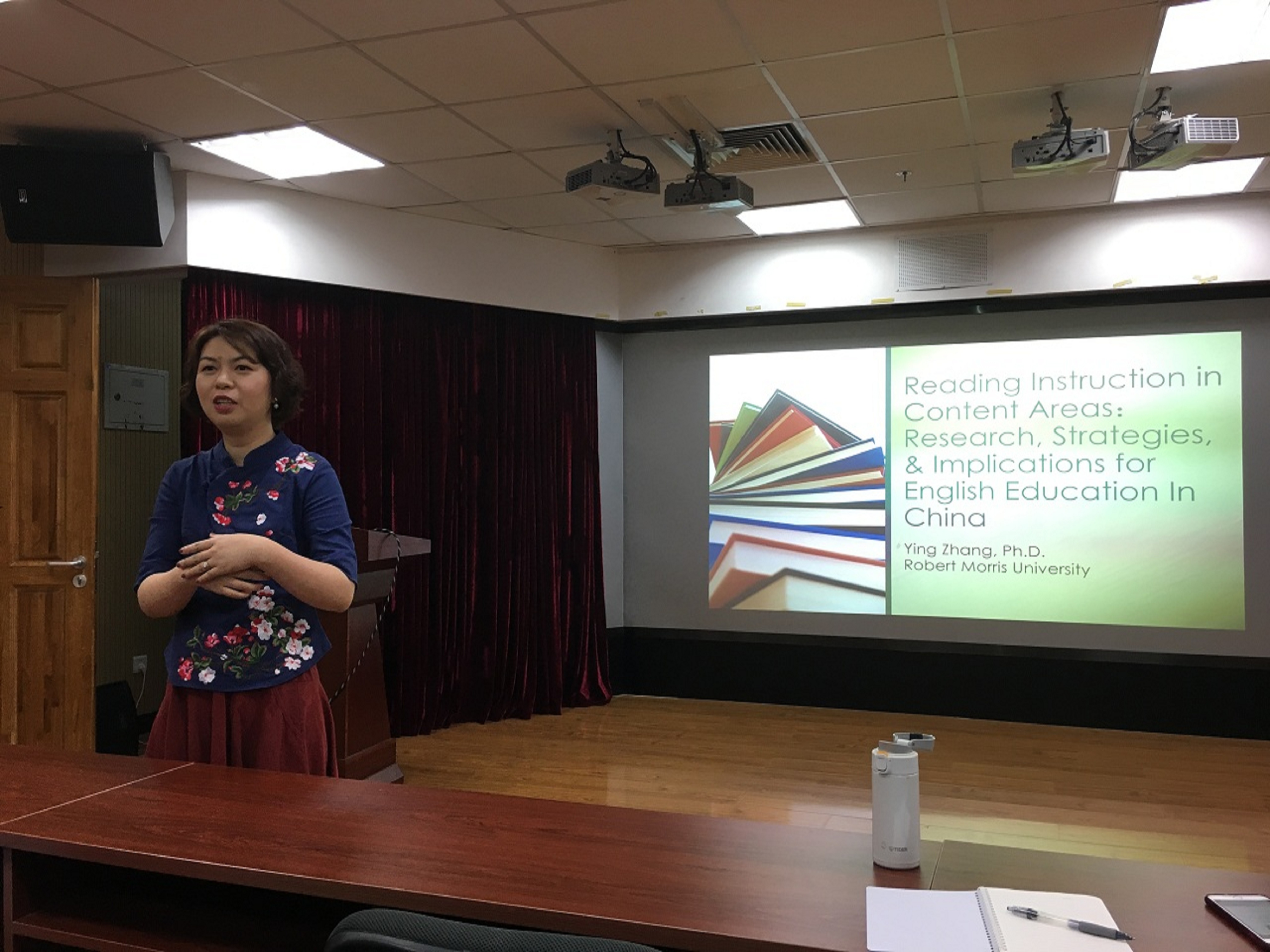 张樱老师1998年进入北京师范大学英语系本科,2002年获本科学位。2003年到美国进行深造,2013年获普渡大学教育学院博士学位。随后以助理教授职位入职于罗伯特莫里斯大学至今,教授本科生研究生课程,担任博士生导师,并负责ESL中小学教师认证项目。2017-2018年担任Three Rivers TESOL(宾州西部TESOL 分会)会长,负责协会的各个项目和活动,包括组织秋季年度会议,春季研讨会,招募新会员,出版协会通讯,以及代表3RT分会参加TESOL总会举办的各项活动,例如TESOL年度会议。