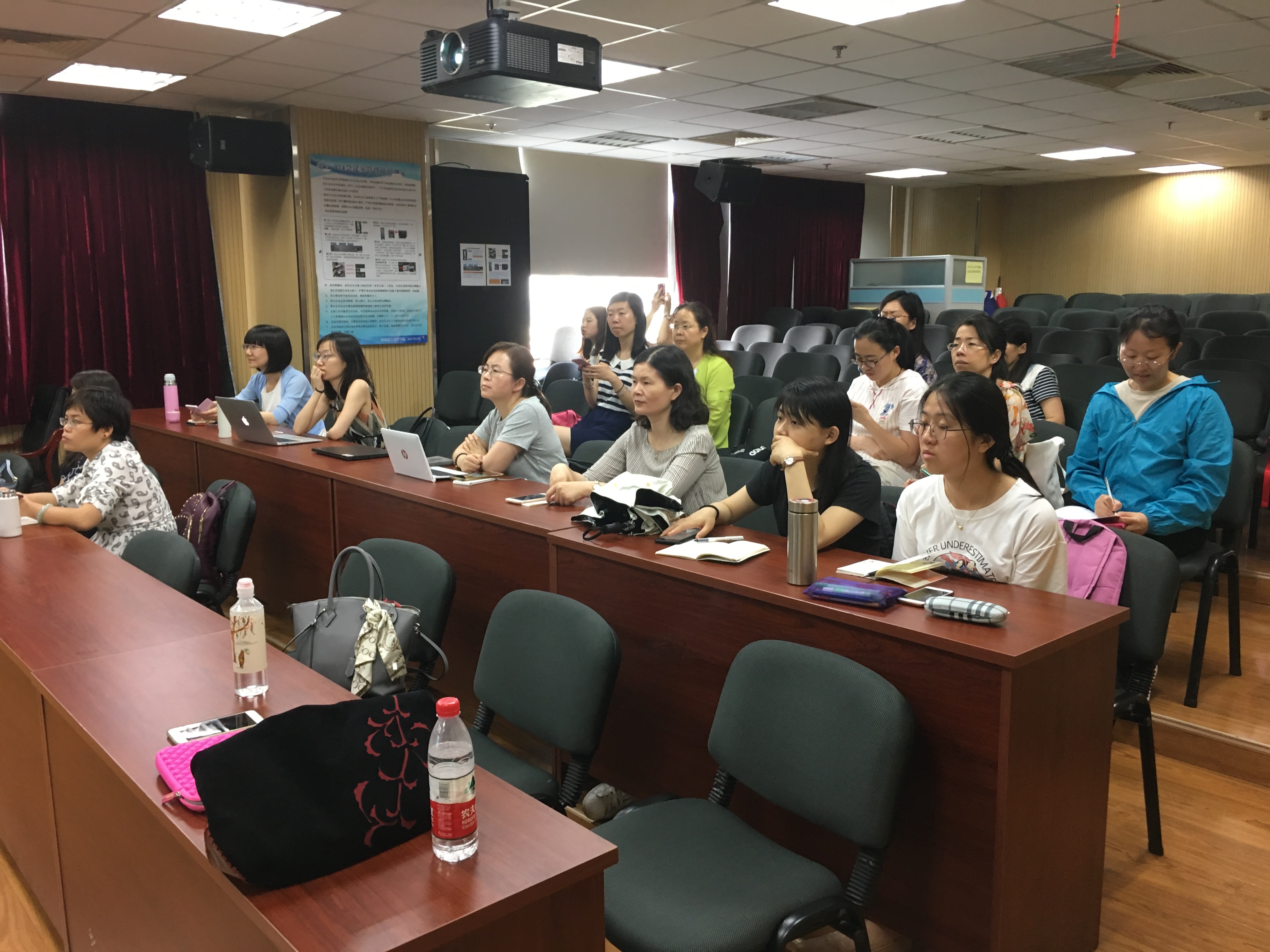 讲座开始,张樱老师首先介绍了自下而上、自上而下、交互式三种阅读模式;接着具体谈到了在教师培训课程中教授的,并在K-12课堂中常使用的几种阅读策略,如Questioning, Think aloud, List-group-label等。随后张老师阐释了学科素养的概念,并与content literacy做了对比解读。最后,张老师和听众们深入交流了美国ESL课程教学等情况。