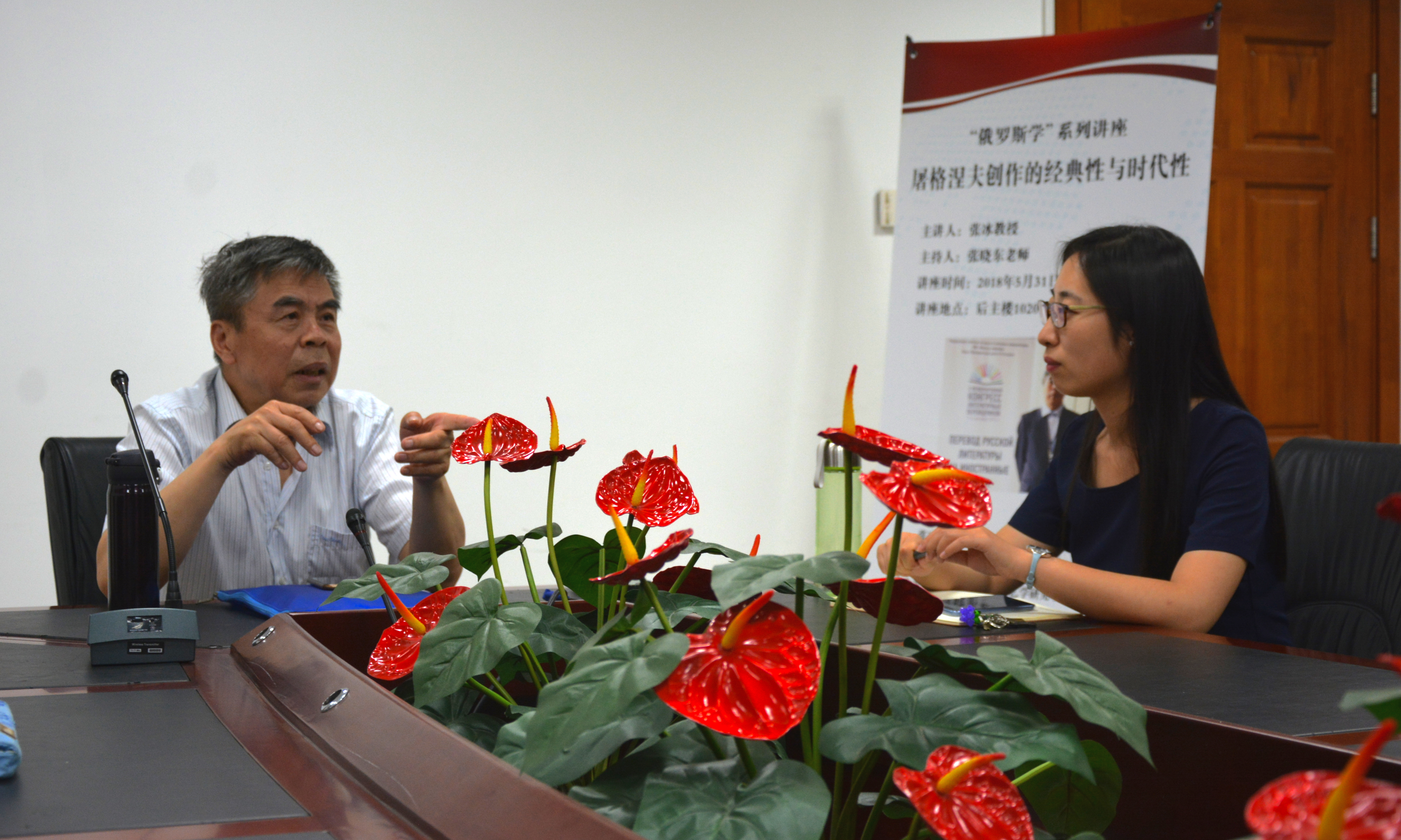 张冰教授向在座师生介绍了许多屠格涅夫的经典名作,并阐释了这些作品在景物、人物心理活动和社会现状描写方面对俄罗斯乃至整个世界文坛的发展都起到了重要的推动作用。