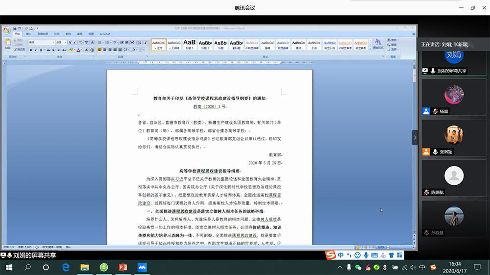5月28日,教育部印发《高等学校课程思政建设指导纲要》(以下简称“纲要”),本次会议围绕“纲要”通过视频观看、文本学习和交流研讨的方式展开学习座谈。