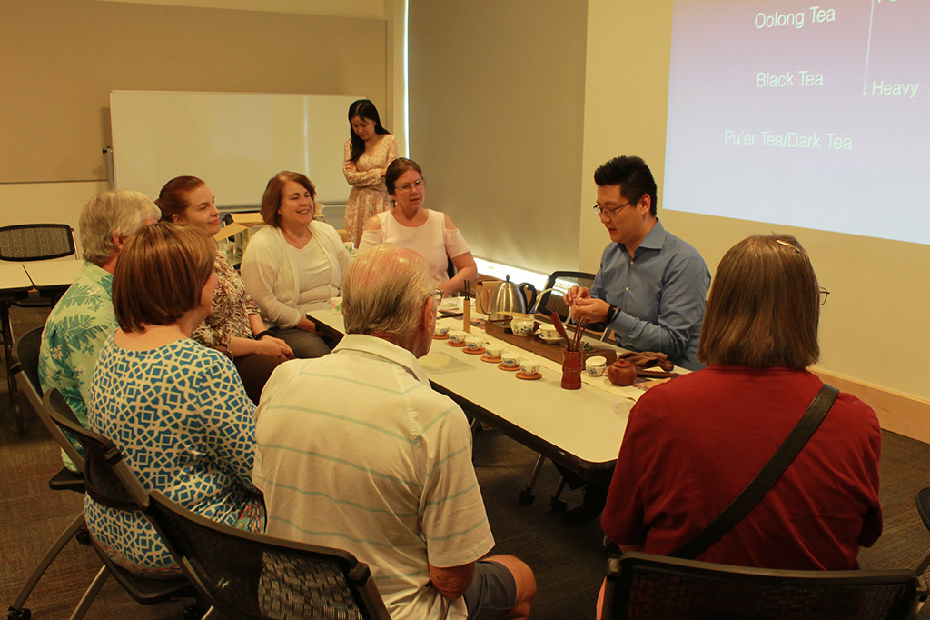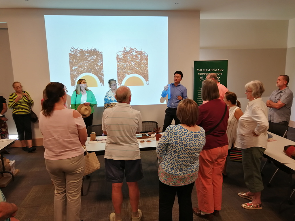 当地时间8月14日下午,威廉玛丽大学孔子学院在威廉斯堡图书馆会议室成功举办中国传统茶文化讲座。本次讲座邀请茗觉茶业公司总经理张韵晗先生及其夫人陈梦晔女士为大家演示中国茶道,并讲解绵延千年之久的中国茶文化。当地居民对本次活动兴趣浓厚,反响热烈,大家在悠悠茶香中共品中国韵味。