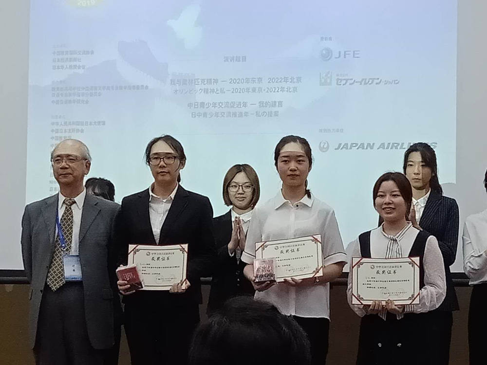 2019年5月25日,由中国教育国际交流协会与日本经济新闻社、日本华人教授会议合作举办的第十四届中华全国日语演讲大赛北京地区预赛在对外经济贸易大学隆重举行,来自十余所北京地区高校的20名选手参赛。外围买球app十大平台官网日文系冯昕旸同学及赵雪同学参加了比赛,其中赵雪同学荣获三等奖,冯昕旸同学获优秀奖,指导教师泽田康德获优秀指导教师奖。