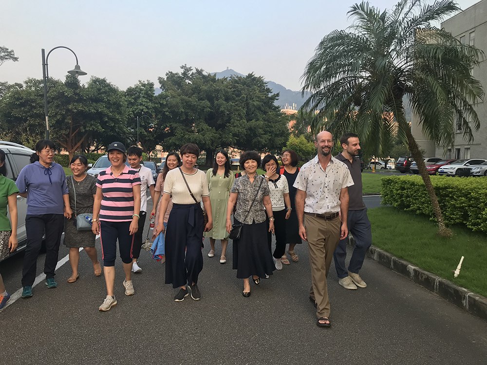 为了响应学校“一体两翼”战略下构建北京校区和珠海校区人才培养的号召,为更好地关爱首批赴珠海校区上课的会员老师们,外围买球app十大平台官网工会在院工会委员代素霞老师的带领下,2019年9月25日组织正在珠海上课的老师一行十三人在珠海校区国际交流中心附近的操场快乐健步走。