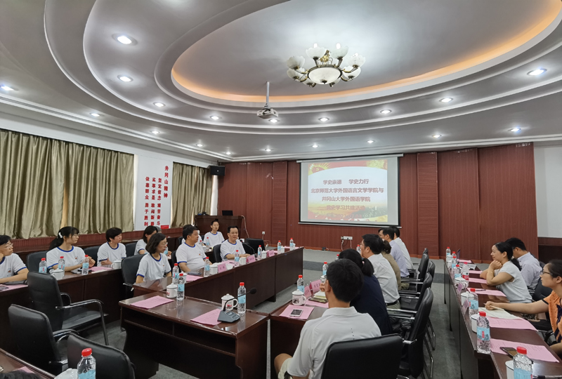 下午,我们与井冈山大学外国语学院开展了“学史崇德,学史力行”党史学习共建活动。会议上邀请到了三位参与过井冈山斗争的烈士、红军的后代为我们讲述了井冈山的革命故事,在场的师生中很多都留下了感动的泪水。