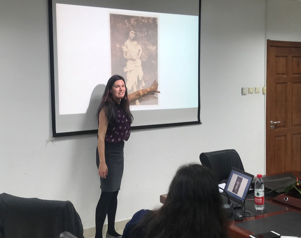 3月20日下午15:30,英文系邀请英国雷丁大学博士外籍教师Dr. Jessica Medhurst 为全院师生作了题为“Lewis Carroll Beyond Wonderland: Photography and the Nineteenth Century Child”的讲座。Dr. Jessica Medhurst以《爱丽丝漫游奇境记》的作者刘易斯·卡洛尔一幅儿童摄影作品为例, 从心理分析学、解构主义和文化分析视角展示了19世纪英国儿童文学的解读方法,同时也展示了20世纪和21世纪的文学评论家们是如何解读其作品中的儿童形象的。