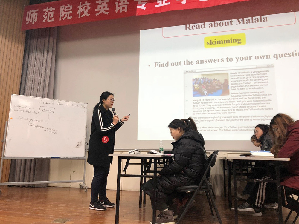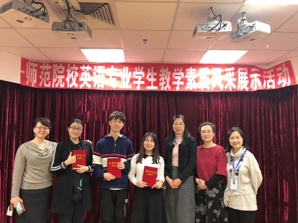 为了加强师范院校英语专业间的交流,展示职前英语教师培养成果,互相学习,共同成长,为培养更多的“四有”好老师做出更大的贡献,2018年12月8日,由外围买球app十大平台官网携手东北师范大学外国语学院、华东师范大学外语学院、华中师范大学外国语学院、陕西师范大学外国语学院、西南大学外国语学院和首都师范大学外国语学院共同举办的“新课标,新理念,新方法——师范院校英语专业学生教学素质风采展示活动”在敬文讲堂和后主楼914成功举行。