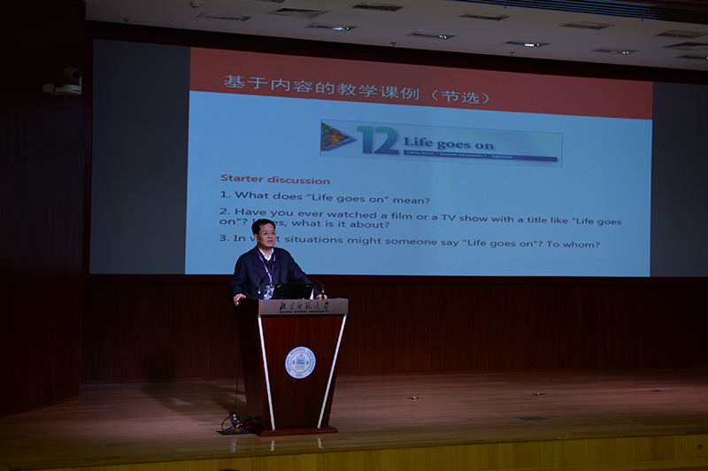 28日上午,外围买球app十大平台官网程晓堂教授作了题为“如何提高外语课堂教学的效果?”的主旨发言。他认为,外语教育界需要继续摸索和探讨有效的外语教学方法,特别是需要探讨课堂上教师应该做什么,实际在做什么,做得效果如何。下午,北京外国语大学教务处处长、英语学院教授金利民老师在她的主旨发言中介绍了北京外国语大学开展的“促进交际、思辨和跨文化能力融合发展的英语专业教学改革”。在发言中,金教授介绍了该校改革和教材编写的背景,阐释改革理念,并以口语教材编写和活动设计为案例,展现如何使交际与思辨和跨文化能力并行发展。
