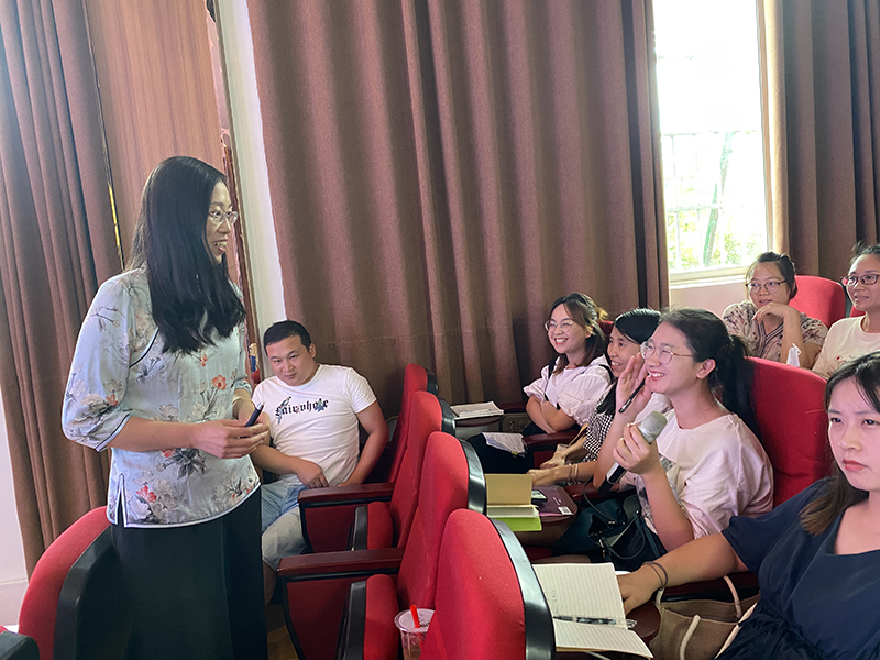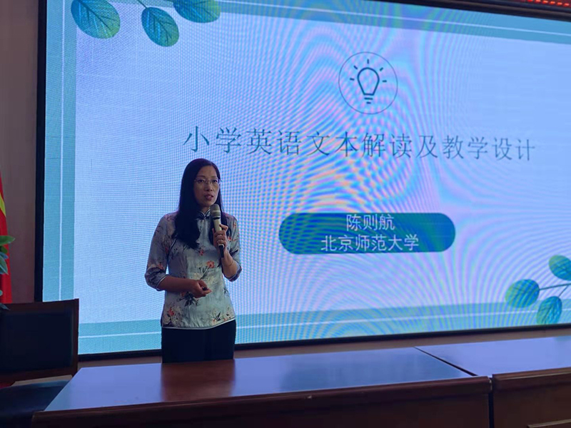 3日下午,陈则航教授为参加讲座学习的小学英语教师作专题讲座,讲座主题为《小学英语文本解读及教学设计》。陈则航教授结合自身科研成果及英语教学调研经验,详细介绍了小学英语教材文本解读的方法,并结合具体教学案例深入分析了教学设计的理念、原则及具体方法。孙晓慧副教授以《小学英语绘本分级阅读教学理念及方法探究》为主题进行讲座,全面介绍了小学英语绘本分级阅读的教学理念,并结合丰富的教学案例,具体分析了小学英语绘本分级阅读的具体教学方法。在讲座过程中,参与培训的老师们针对在教学实践中的困惑与难题进行提问,志愿服务团队成员一一进行细致解答,现场学习气氛热烈,老师们纷纷表示受益匪浅。