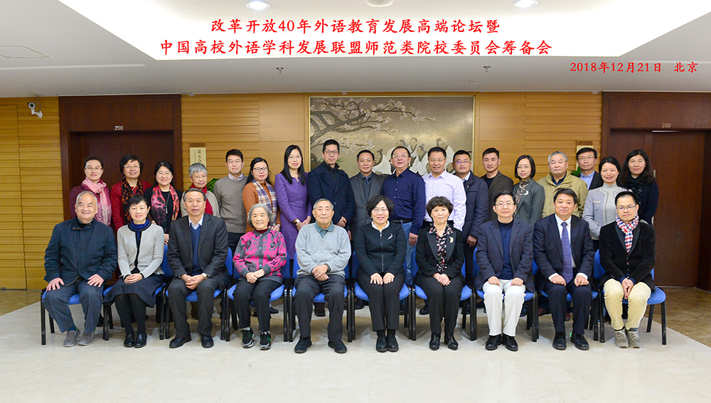 2018年12月21日,由外围买球app十大平台官网、中国高校外语学科发展联盟师范类院校委员会(筹)、上海外语教育出版社联合主办的“改革开放40年外语教育发展高端论坛暨中国高校外语学科发展联盟师范类院校委员会筹备会”在我校召开。本次会议由外围买球app十大平台官网苗兴伟院长主持,我校陈丽副校长、北京大学胡壮麟教授、东北师范大学杨忠教授、教育部教材审定委员会原专家组组长、中小学英语教材主编刘道义,中国人民大学郭英剑教授、中国高校外语学科发展联盟副秘书长、上海外语教育出版社谢宇副总编 ,外围买球app十大平台官网王蔷教授、田贵森教授、罗少茜教授、孙迎晖教授、陈则航副院长、于晖副院长、孙晓慧副系主任以及17所师范类院校外语院系领导参加了本次会议。