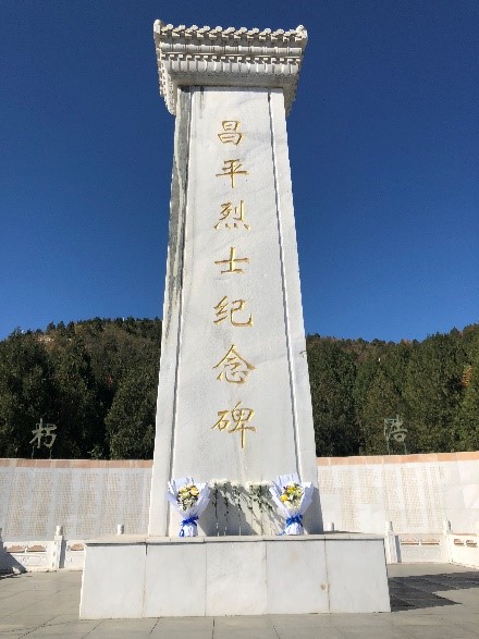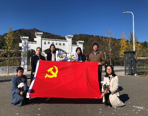 昌平革命历史纪念馆和烈士陵园位于昌平区流村镇西峰山村,主要陈列昌平革命史及烈士事迹,安葬抗日战争、解放战争、抗美援朝等时期牺牲的英烈,包括昌平籍和在昌平牺牲的外地烈士。英文系党支部在支部书记张政老师的带领下,在昌平烈士纪念碑前,面对中国共产党党旗,郑重宣誓,向烈士纪念碑和英烈墙集体默哀和鞠躬并敬献了菊花,随后支部成员参观了昌平革命历史纪念馆序厅、“京华古城燃星火”、“矢志不渝抗敌寇”、“红旗漫舞翻新历”、尾厅等革命历史展览板块。