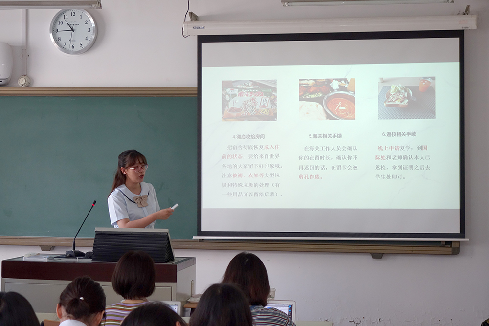 7月2日,日文系举办了“赴日留学生活经验交流会”,邀请2016级4位留学回国的同学——樊婧怡、袁嘉彤、冯昕旸、杨茗美为2017、2018级的师弟师妹介绍赴日留学的相关经验。