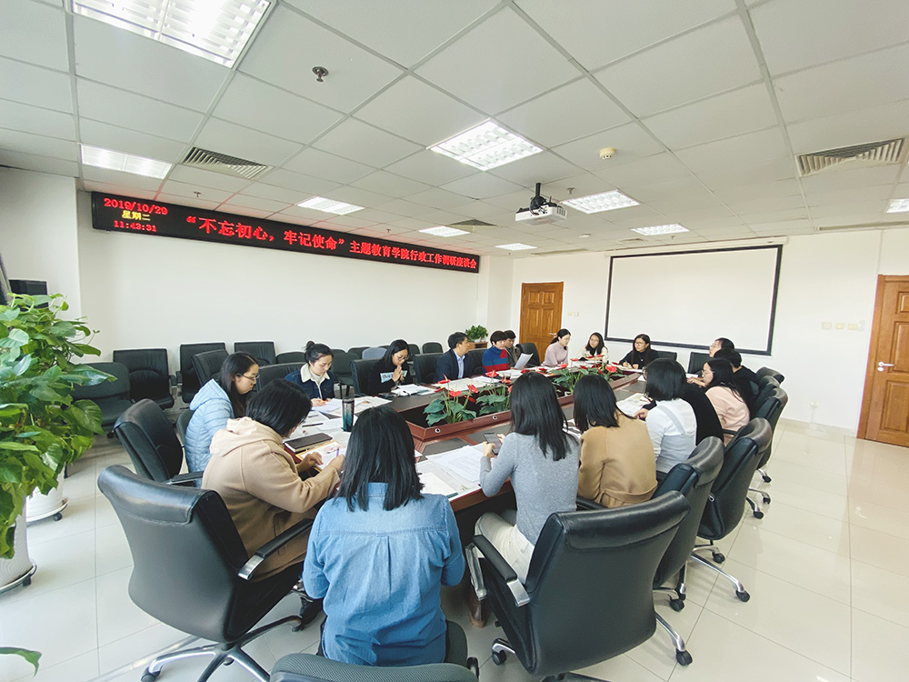 2019年10月29日上午,院长苗兴伟召集学院全体行政人员,开展“不忘初心、牢记使命”主题教育调研。本次调研座谈会旨在了解各位老师在日常工作中遇到的问题及老师们切实关心的问题,听取老师们对于学院各项工作的意见和建议,确保我们行政工作更好地促进教学科研的发展和提升。
