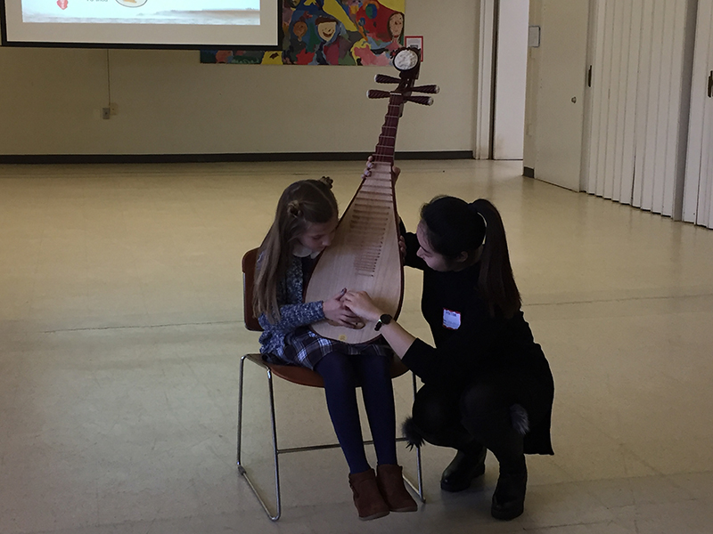 在之后的互动环节,梅婷婷老师又向孩子们简单介绍了琵琶的构造,并演奏了《小星星》、《新年好》、《茉莉花》、《铃儿响叮当》等耳熟能详的歌曲。
