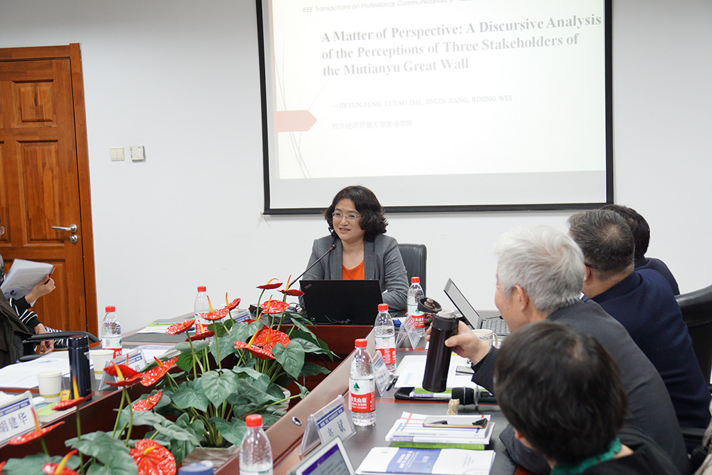 辛斌教授的讲座题目为“英语新闻语篇体裁互文中的语言过程分析——以美媒关于2015中国‘9.3’阅兵报道为例”。他首先区分了文章体裁和文学体裁的不同概念,然后就新闻语篇中的体裁互文及语言过程进行分析,以揭示美媒对中国现代化发展的心态。秦洪武教授提出大数据时代,采用N-gram、文献计量等方法有助于分析大规模文本数据中的语言型式变化。程乐教授从社会符号学角度阐释了文化遗产和文化认同在法律语篇中的互动现象。他认为法律语篇中建构的文化遗产是一种社会实践,其意义可以通过社会对话和权力协商的方式得以表征。冯捷蕴教授以世界文化遗憾慕田峪长城为例,探究了中国文化遗产地利益相关主体的不同立场和观点。并就“现代性”和“理想化的遗产标准”进行讨论,进而为文化遗产管理和职业沟通提出实际建议。