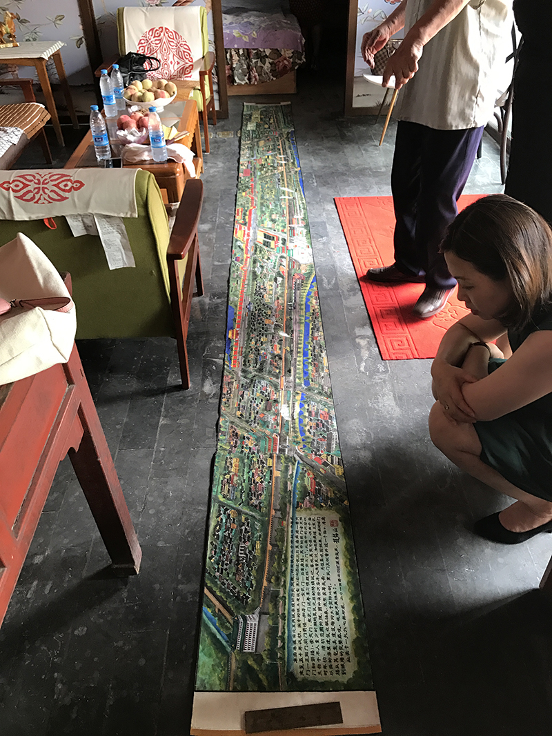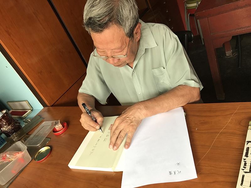 赵学长今年74岁,一直住在施兴胡同里这座已有160多年历史的老院落中,从小就十分喜欢绘画,深得美术老师的喜爱,高考时,顺理成章报考中央美术学院。然而事与愿违,当时正赶上国家经济困难时期,美院停招,他无奈之下报考了北京师范大学外语系英语专业并被录取。毕业后赵锡山成为一名英语教师,兢兢业业地工作,有109本学术成果。然而对绘画的热情不减,三十年前有感于北京的变化之快,便凭借惊人的记忆力,不查资料不靠网络,用画笔记录老北京的点点滴滴,真实再现了上个世纪五六十年代的老北京风土人情。其画作多次参加展览,并出版了人生的第一本书——《昨日重现:水彩笔下的老北京》。赵学长见到母校的老师,非常亲切,饶有兴趣地拿出他视如珍宝的一幅幅水彩画,并赠送给母校一幅50年代的北京师范大学画作。