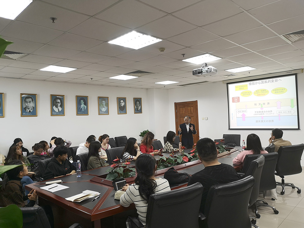 公开讲座以“《竹取物語》与神仙世界”为题,通过复原平安前期叙事文学作品中共有的“神仙世界”,指出对中国神仙思想的接受吸纳是该作品成立的重要文化背景,进一步否定了《竹取物語》取材于《斑竹姑娘》的学界旧说。在此基础上,渡边教授还讲述了日本固有文化与外来汉文化相碰撞与融合的特点。讲座采用图文搭配的方式给听众留下了深刻的印象。