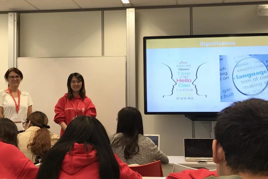 两周的课程学习主要分为两个部分:Trends and Topics in Neurolinguistics & Perfecting your Academic Writing Skills。第一周Trends and Topics in Neurolinguistics课程,按照神经成像技术、神经预测机制、神经生物学下的语言模型、神经元与语言学等数十个模块,课程讲师为同学们介绍了神经语言学的发展趋势与最新话题。短短五天的课程,同学们不仅了解了fMRI、EEG、MEG等常用研究方法,参观了仪器所在的研究所,还学习了蝙蝠模型等研究实例,最后小组合作完成了自己的研究设计。课堂中,同学们畅所欲言,积极提出自己的疑问与想法;更在与各国小伙伴的交流中,收获来自其他学科的启发,拓展思路。
