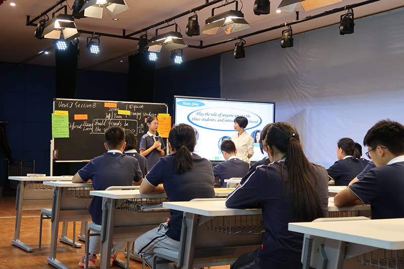 2020年秋季学期以来,北京师范大学外语教育与教师教育研究所与珠海市金鼎中学合作进行了“促进学生核心素养与关键能力发展的教学改进研究”项目(以下简称“学能”项目)。本次项目自2020年9月启动,王灿强和王雪两位改进教师先后进行了线上集体说课、多次教案修改与两次试讲打磨课程。4月7日,我所王蔷教授、罗少茜教授赴金鼎中学观摩教学并点评。来自珠海市不同区域的教研员、一线教师600余人在现场参与观摩研讨,另有来自云南、贵州、天津等地的教师在线上观看了活动直播。