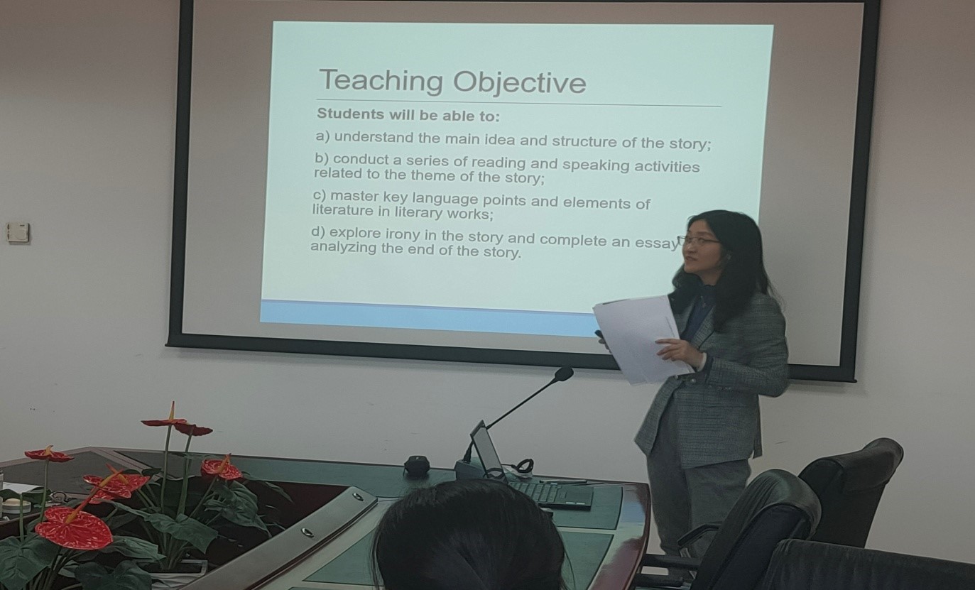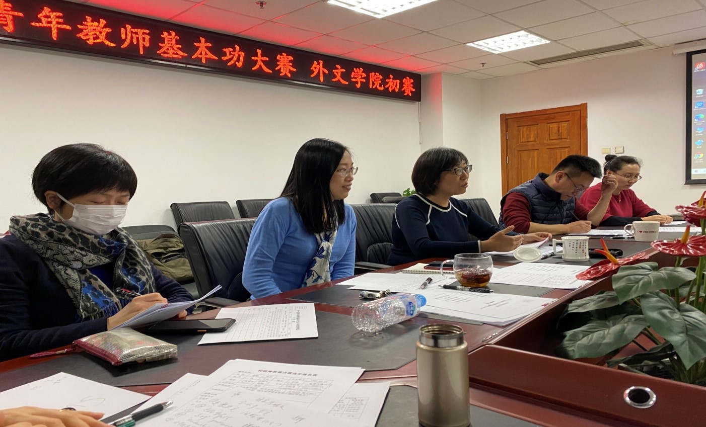 本次预赛倡导构建以学生为中心的教学关系,通过交互式学习和探究式学习等多元方法,培养学生的语言能力、文化意识、创新思维、批判思维。参赛教师以此为指导,撰写教案和教学设计。英文系姚成贺、黄荷,公外部邵名莉,日文系的徐畅,四位老师积极报名参赛。赛前,外围买球app十大平台官网工会做了充分动员,组织了与以往参加北京市和校级获奖选手的经验交流会。选手们做好了充分的准备,以饱满的精神状态参赛。本届青教赛,学院工会邀请了具有多年教学经验和教师教育方向的教师林洪、刘娟、杨庆云、陈则航、蒋义乔、孙晓慧、王楠老师担任评委。比赛中,选手们按照决赛章程进行了2分钟说课,15分钟讲课和3分钟问答。评委们针对每位老师的讲课环节、互动和教案进行细致入微的点拨,为参赛的青年教师们提出了具体的、具有建设性的意见。经过评委的交流,参赛教师们不仅增强了参赛的信心,还对如何实现生生互动、师生互动有了更深的体会。