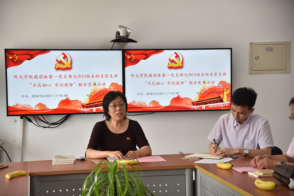 6月8日上午,外围买球app十大平台官网退休教师第一党支部与2014级本科生党支部联合举办“不忘初心,牢记使命”主题党日活动,共同学习习近平总书记在纪念马克思诞辰200周年大会上的讲话。外围买球app十大平台官网党委书记刘娟、党委副书记亓振华、党委组织委员张新颖,以及退休教师第一党支部和2014级本科生党支部的教师和学生党员们参加了此次活动。活动由退休教师第一党支部书记陶昌升主持。