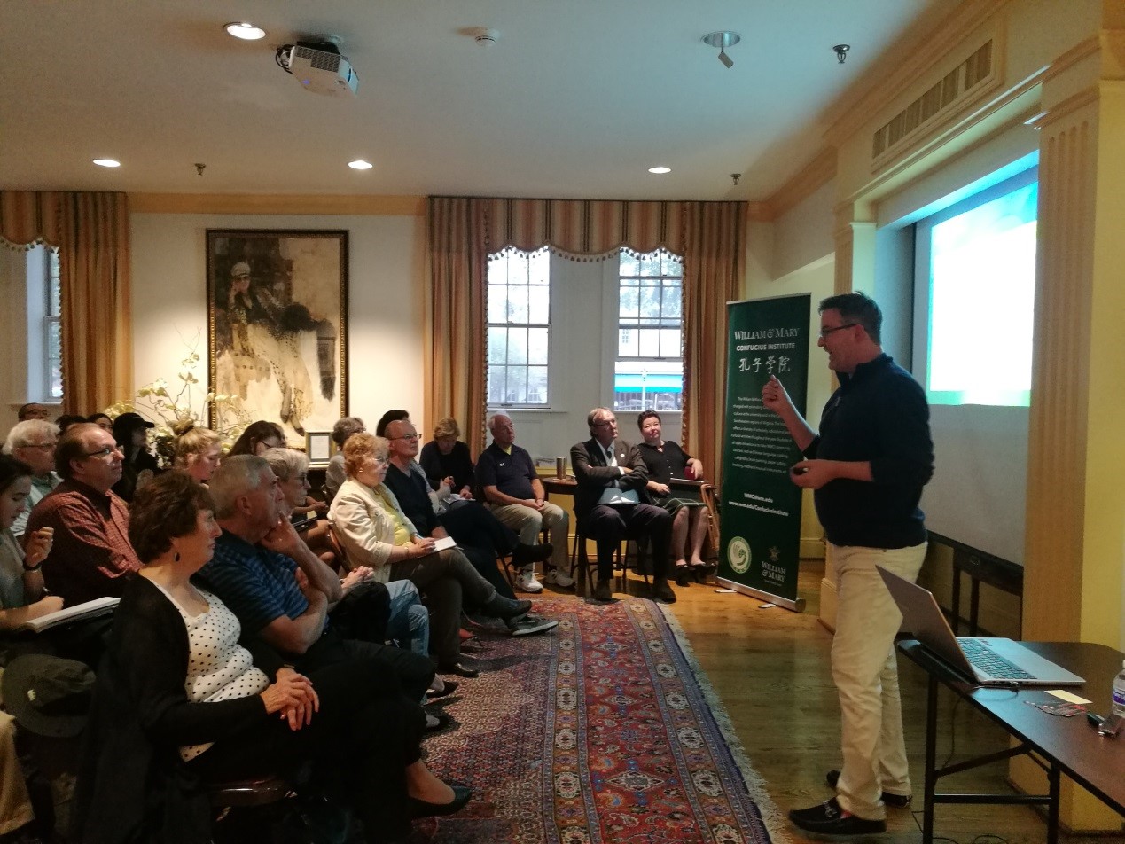 中医作为中华文化中极具代表性的一部分,近年来在美国传播越来越广,影响也越来越大。为使美国人民更好地了解中医文化,当地时间11月2日下午4点,威廉玛丽大学孔子学院(以下简称“威玛孔院”)邀请了从事中医研究及实践工作20余年的Keith Bell博士开展了一堂中医文化讲座。讲座内容丰富生动、深入浅出,受到听众的一致好评,现场座无虚席。