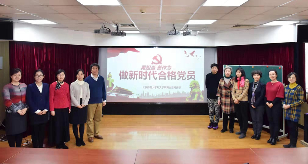 2019年11月20日下午,英文系党支部在后主楼914召开了“不忘初心、牢记使命”专题组织生活会。会议首先由英文系党支部书记孙晓慧老师为全体党员上了“勇担当,善作为,做新时代合格党员”主题党课。随后各位党员教师基于这一主题开展了“不忘初心、牢记使命”专题组织生活会。同时,英文系党支部号召全体党员教师为张家口尉县代王城中学积极捐书,为贫困地区的学生送去温暖和关怀。
