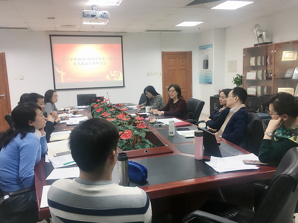 2019年3月11日,外围买球app十大平台官网党委召开2018-2019学年第二学期党风廉政专题会议。会议由党委书记刘娟主持,党委委员、党政联席会成员、理论学习中心组成员参加会议。