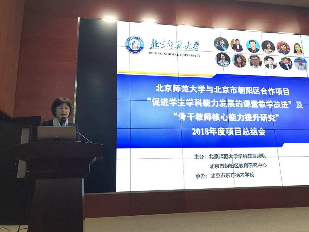 2019年3月9日上午,朝阳区与北师大合作长达三年半的项目“促进学生核心素养与关键能力发展的教学改进研究”(以下简称“学能”项目)及合作一年的“骨干教师核心能力提升研究”(以下简称“骨干教师”项目)2018年度项目总结会在东方德才学校高中部隆重举行。北京市朝阳区教育委员会副主任徐志辉,朝阳区教育研究中心主任杨碧君,北师大九大学科专家团队,以及朝阳区各学科的教研员、学校教师代表出席了大会。