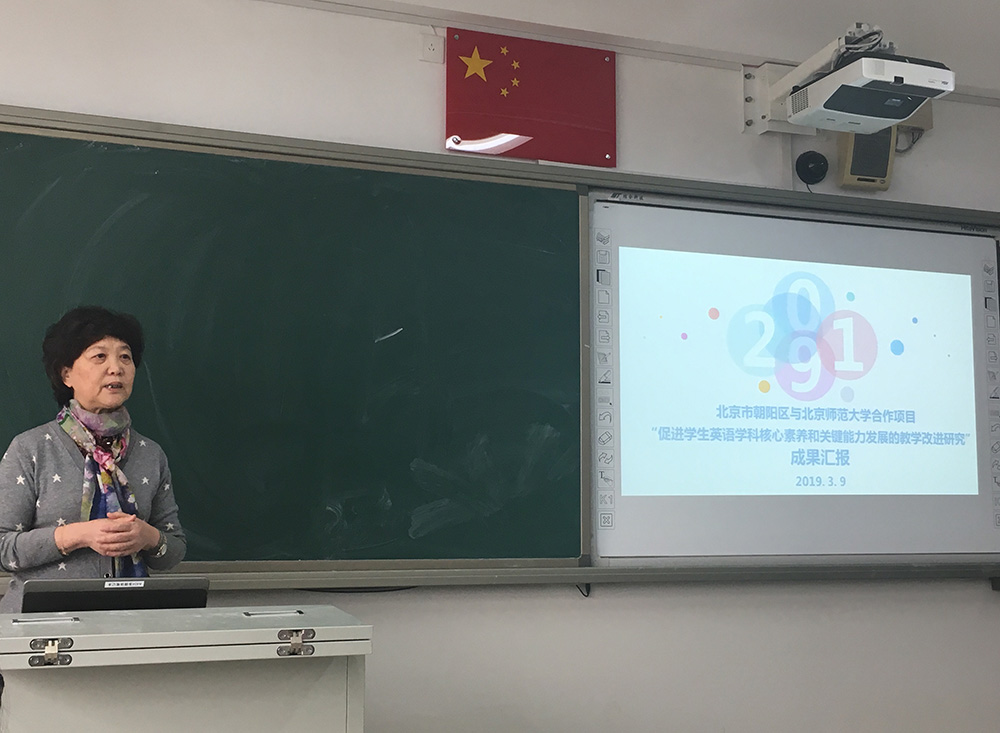 之后,王老师强调了学能项目的宗旨和特点,它不同于一般的教师讲座和培训,关注的是教师的课堂教学和教师专业发展,它最大的魅力是激发老师内在的驱动力,抓住教学本质,回归教学内容,避免教学形式化。在3年半的合作时间里,朝阳区英语学科参与改进学校14所,15位教师参加改进。70%的教师取得了论文、课例获市级一、二、三等奖的优秀成绩,1位教师参加项目后获评朝阳区优秀青年教师,5位教师被评为区级骨干教师,1位教师获评朝阳区学科带头人,2位教师被评为市级骨干教师。回顾取得的成果,为这批在课题中成长起来的英语学科骨干教师感到欣喜,她们正在新理念的指导下,持续不断改进和创新教学方式,把培养学生学科核心素养的目标落实在自己的课堂教学中,已经走在了全国课程改革的前列!同时,这也证明了大学、教研部门和学校三方合作支持教师专业发展的模式,特别是深入课堂、依托教材、以3X3能力框架为指导,以教学改进为抓手的持续、系统的合作发展模式,可以有效地改变教师的教学理念,提高教师的教学能力,收到良好的课堂改进效果。在高中课程改革即将全面正式启动之际,王老师鼓励更多的老师们将自己的教学实践进行反思提炼,完成成果的固化,课题组愿意继续为老师们提供支持,给予更多交流的机会和发展的平台。