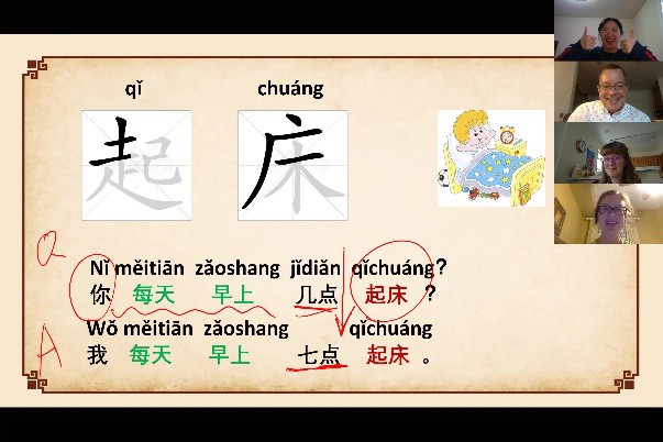 (图一:图为第一次用Zoom给威廉玛丽大学学生及教授上Chinese Level 1,学生们积极配合,教学效果及学生反馈都甚好)