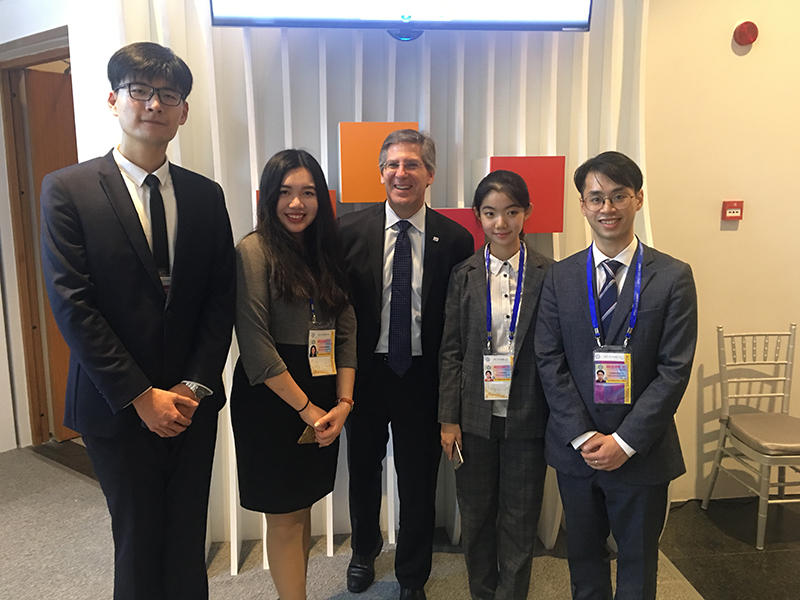 中国青年代表团合影,从左至右分别为程康笛、李雅轩、卢炜媛、孙启明