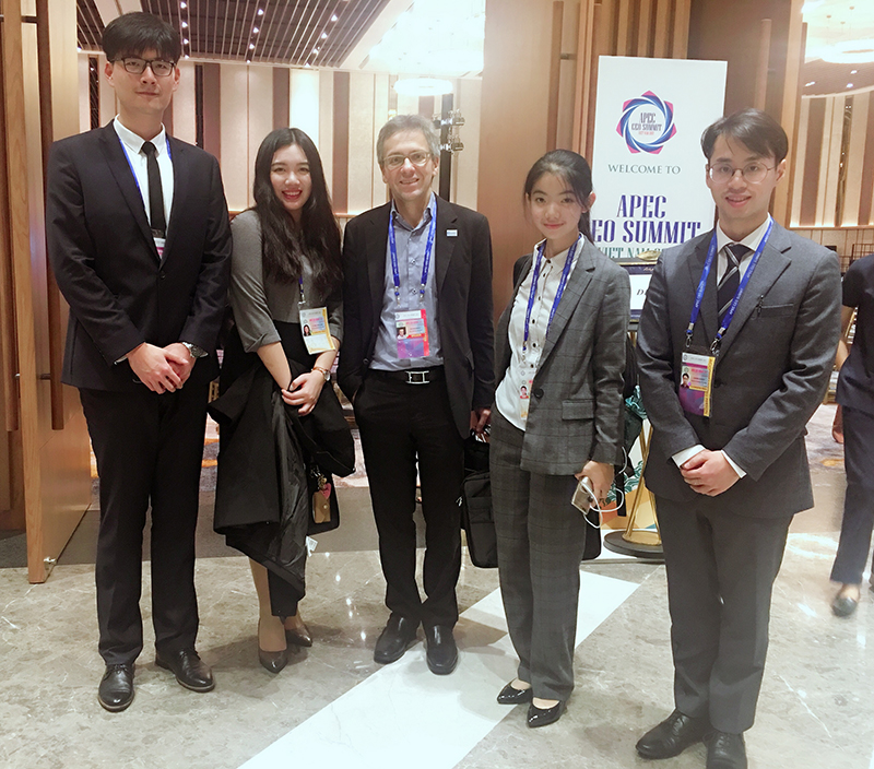 11月8至10日,亚太经合组织(APEC)工商领导人峰会在越南岘港举行,外围买球app十大平台官网2014级本科生程康笛因获得2017模拟亚太经合组织大会冠军,作为中国四名青年代表之一,随国家领导人一同参加了会议。