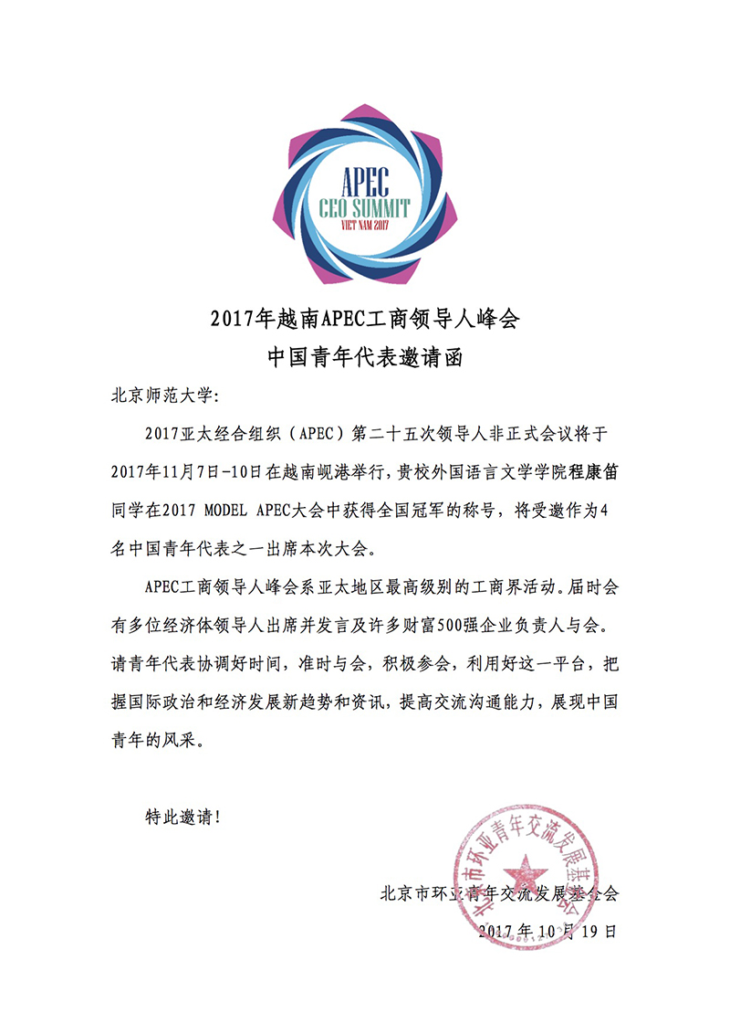 APEC工商领导人峰会邀请函